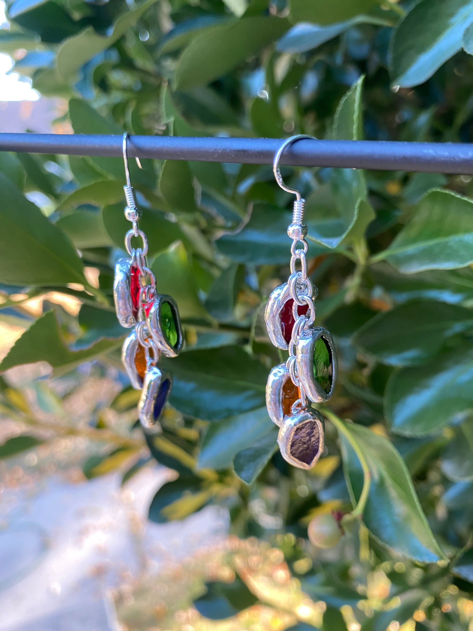Bring festive sparkle to your holiday style with these stunning stained glass dangling earrings. Hand-crafted to showcase a charming string of lights design, they capture the magic of the season. Perfect for holiday parties or adding a touch of seasonal cheer year-round, these lightweight beauties are an instant conversation starter.