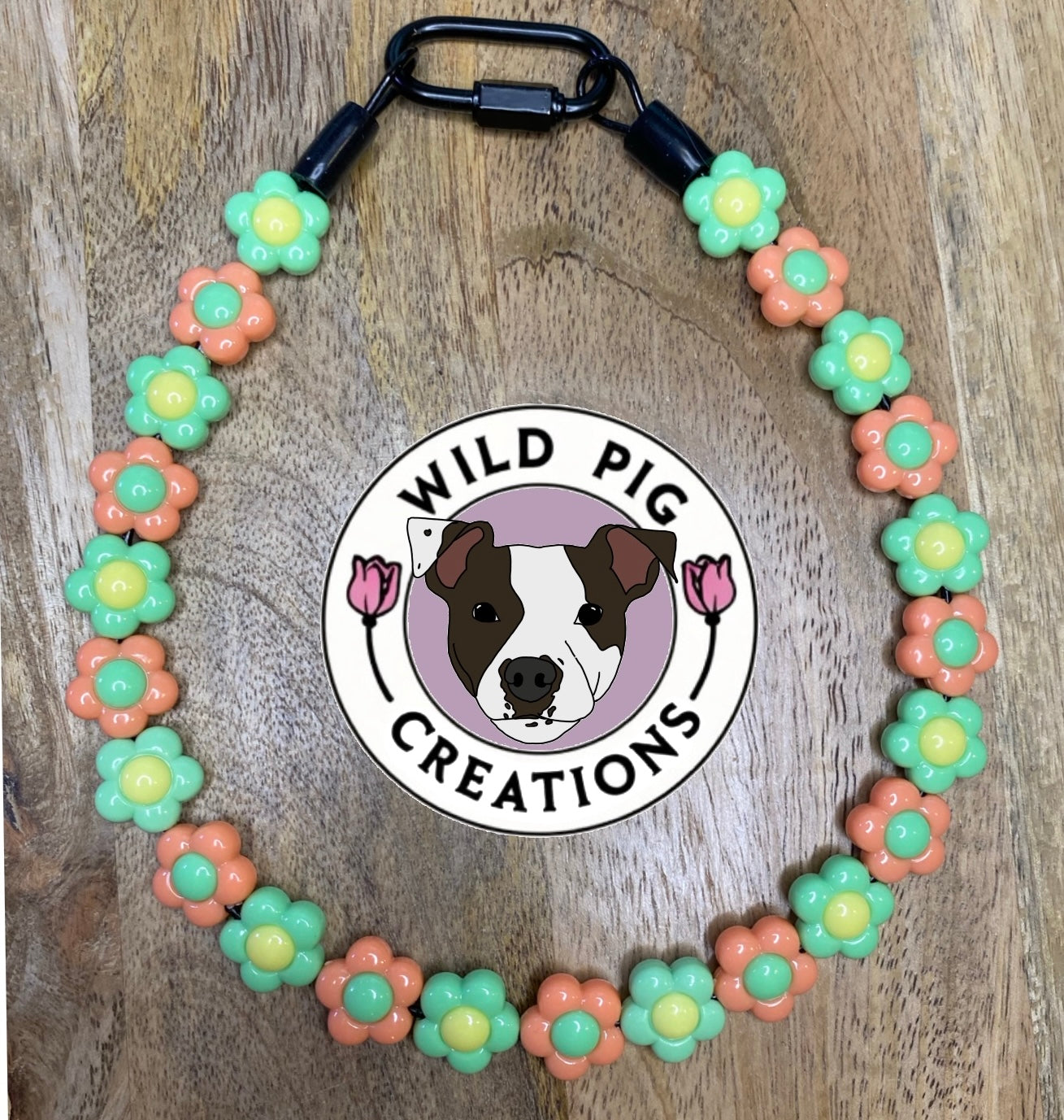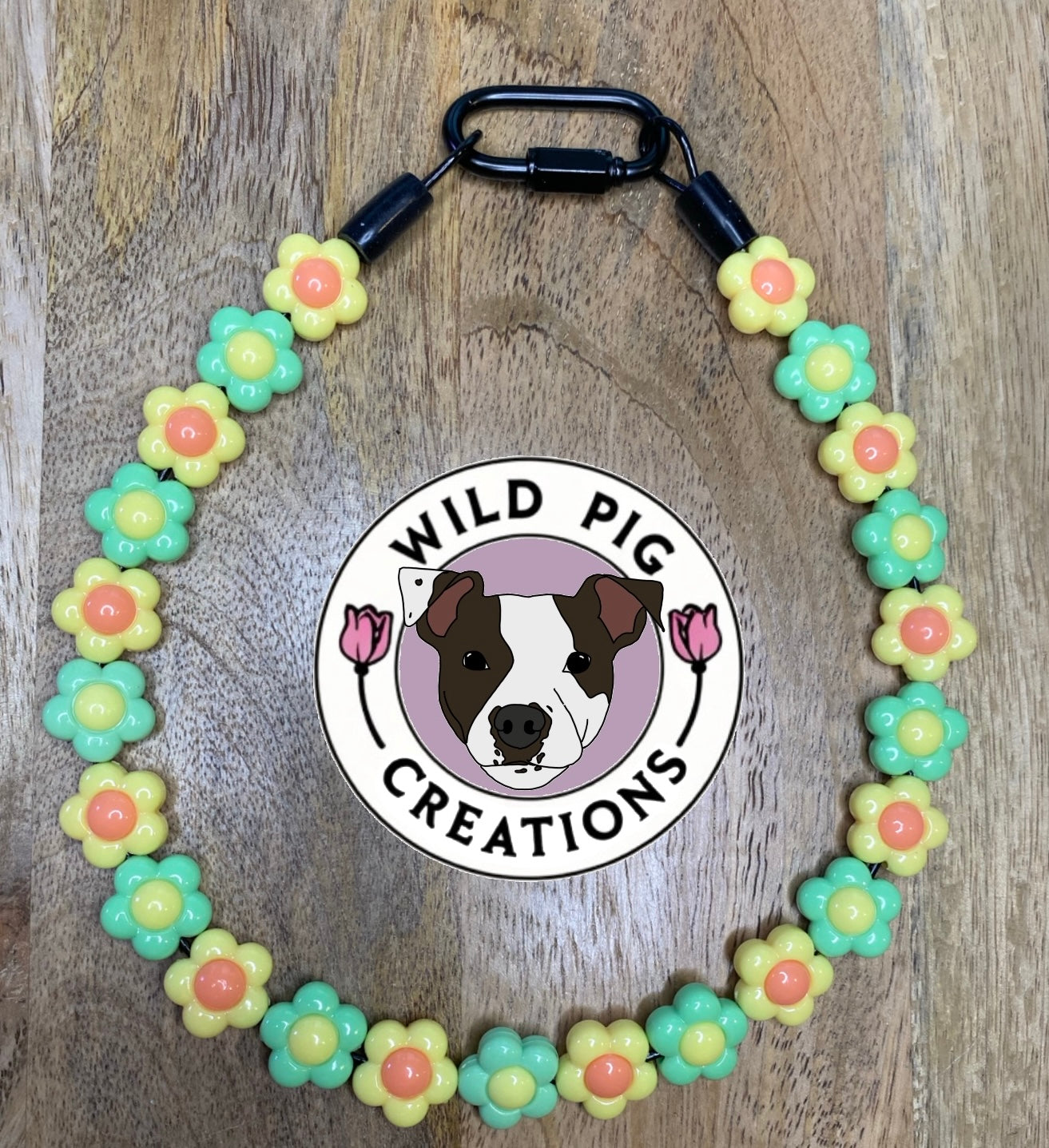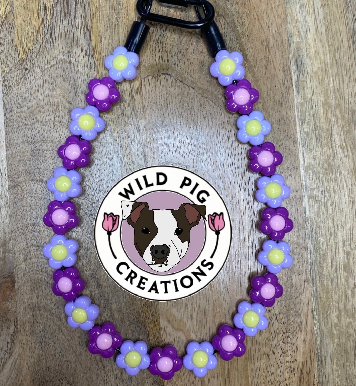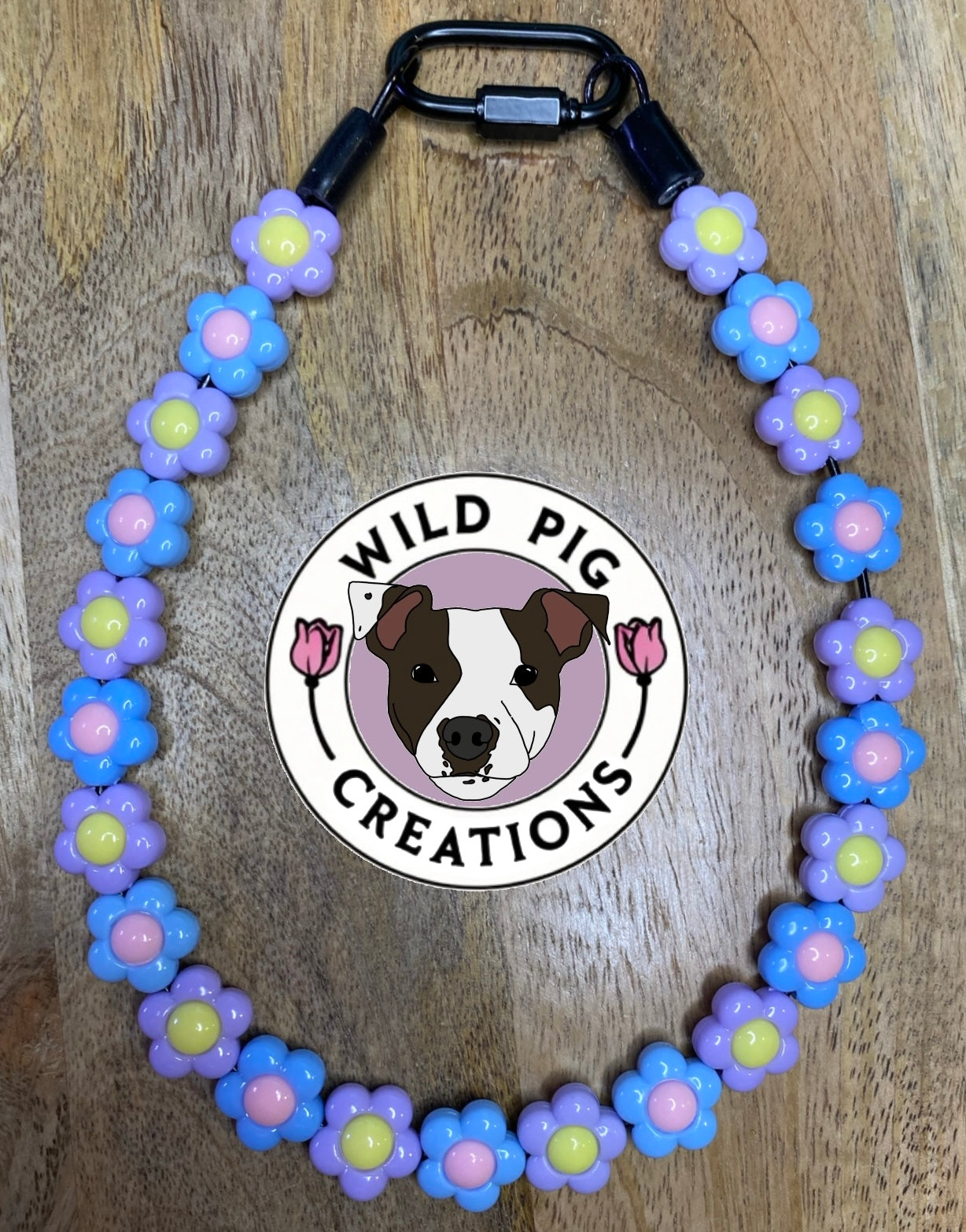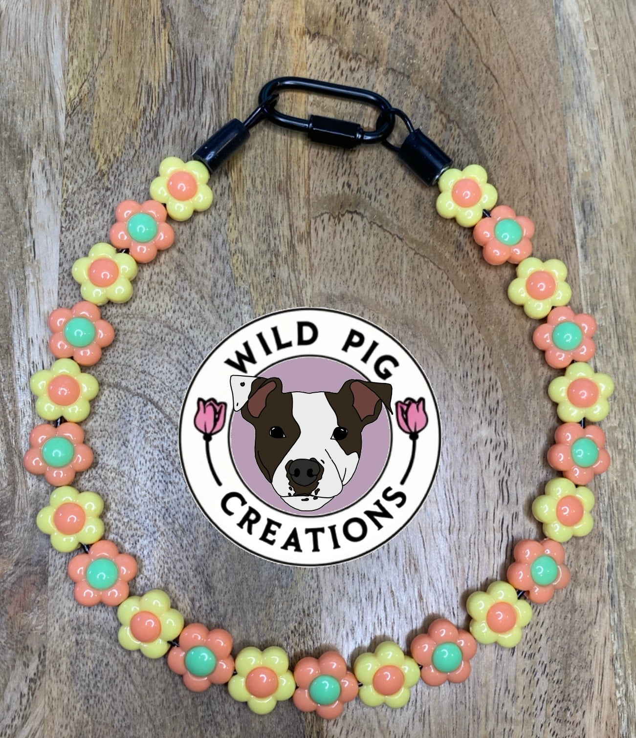This Flower Power Collar features bright flower beads that bring cheerful vibes to your dog’s look. This lively collar adds a burst of color and fun, perfect for pups who love to stand out and enjoy the sunny season in style.