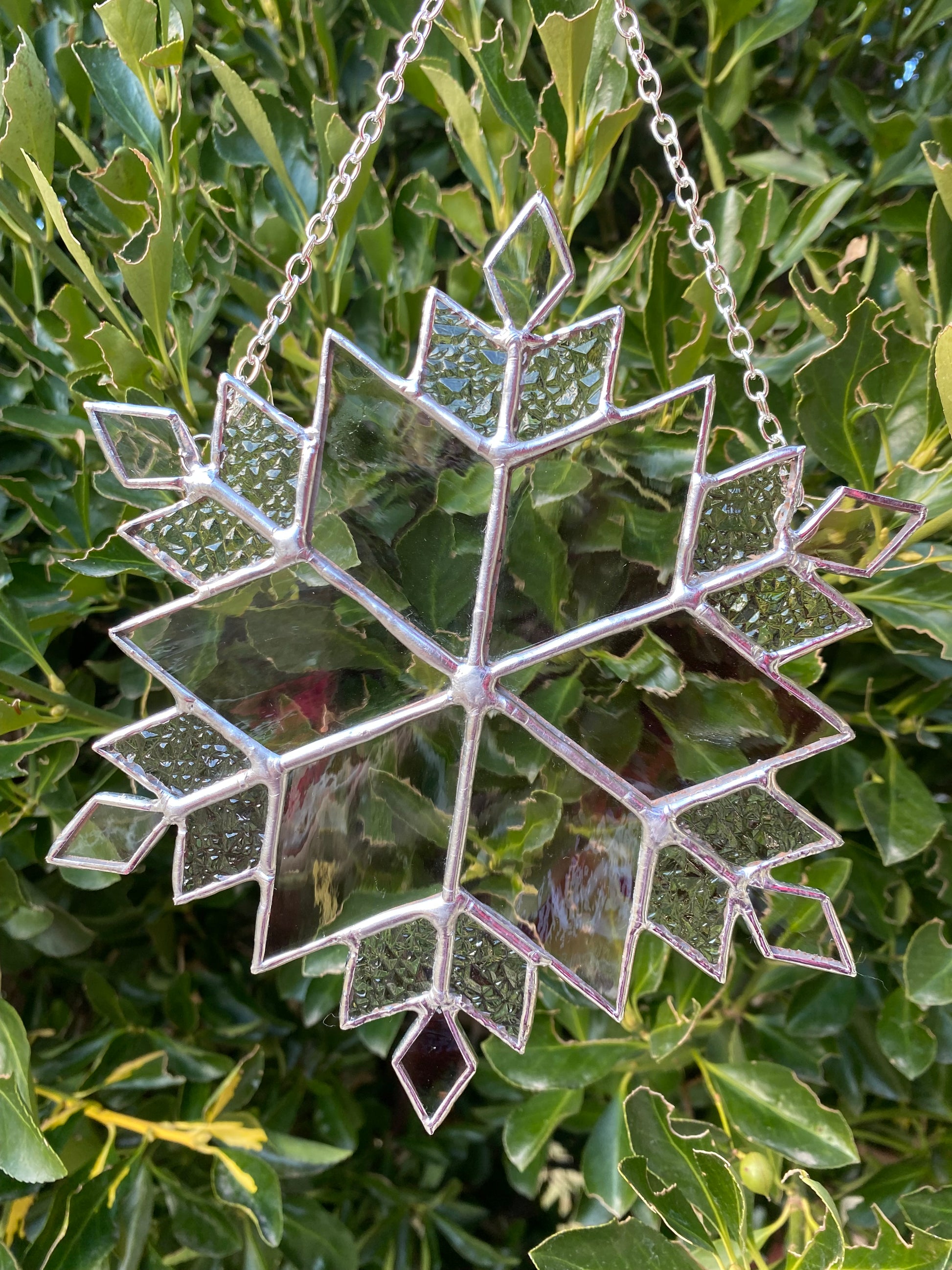 Make your home a winter wonderland with these hand-crafted snowflakes made from stained glass. No two snowflakes are alike - just like real snowflakes!