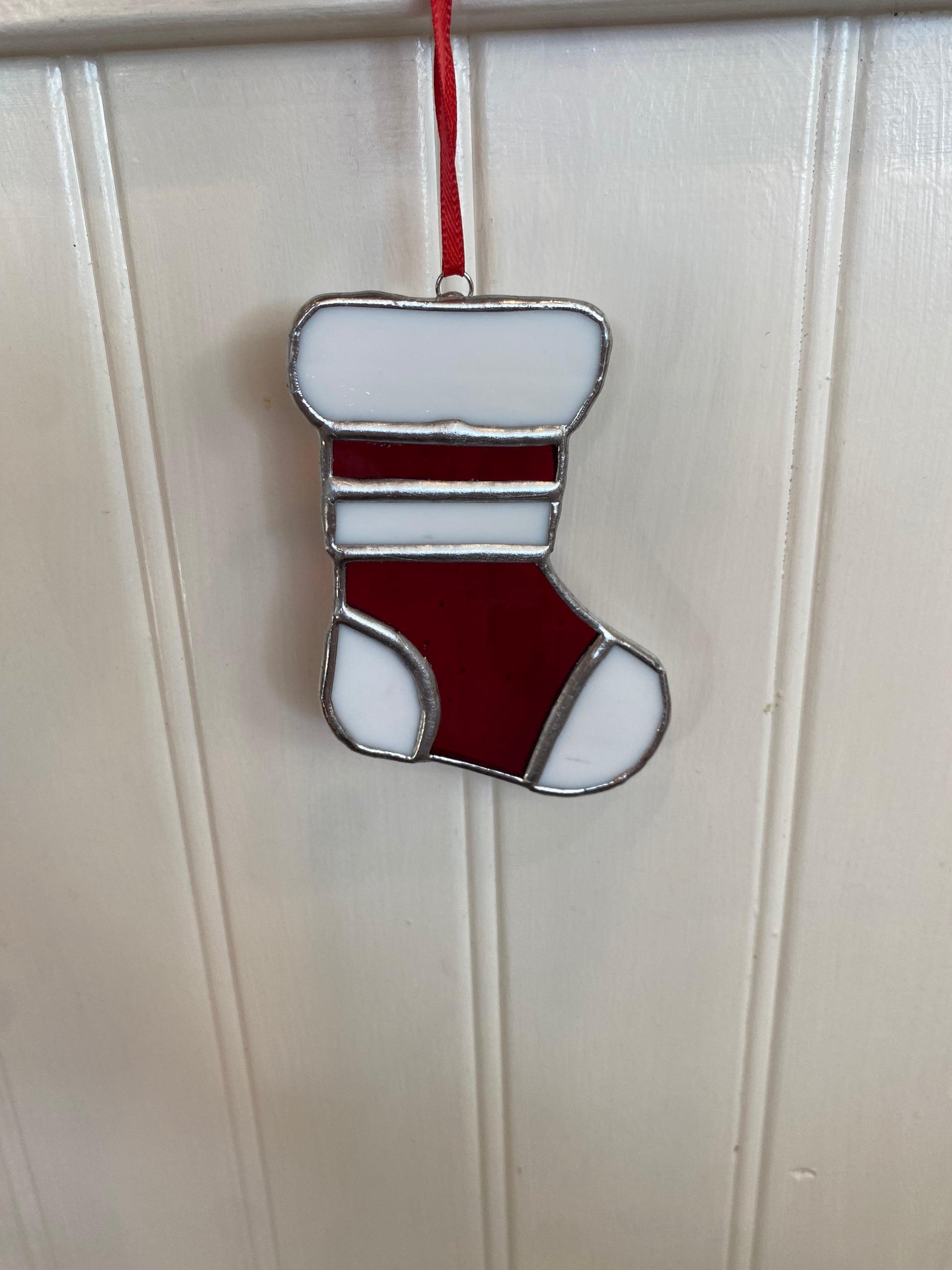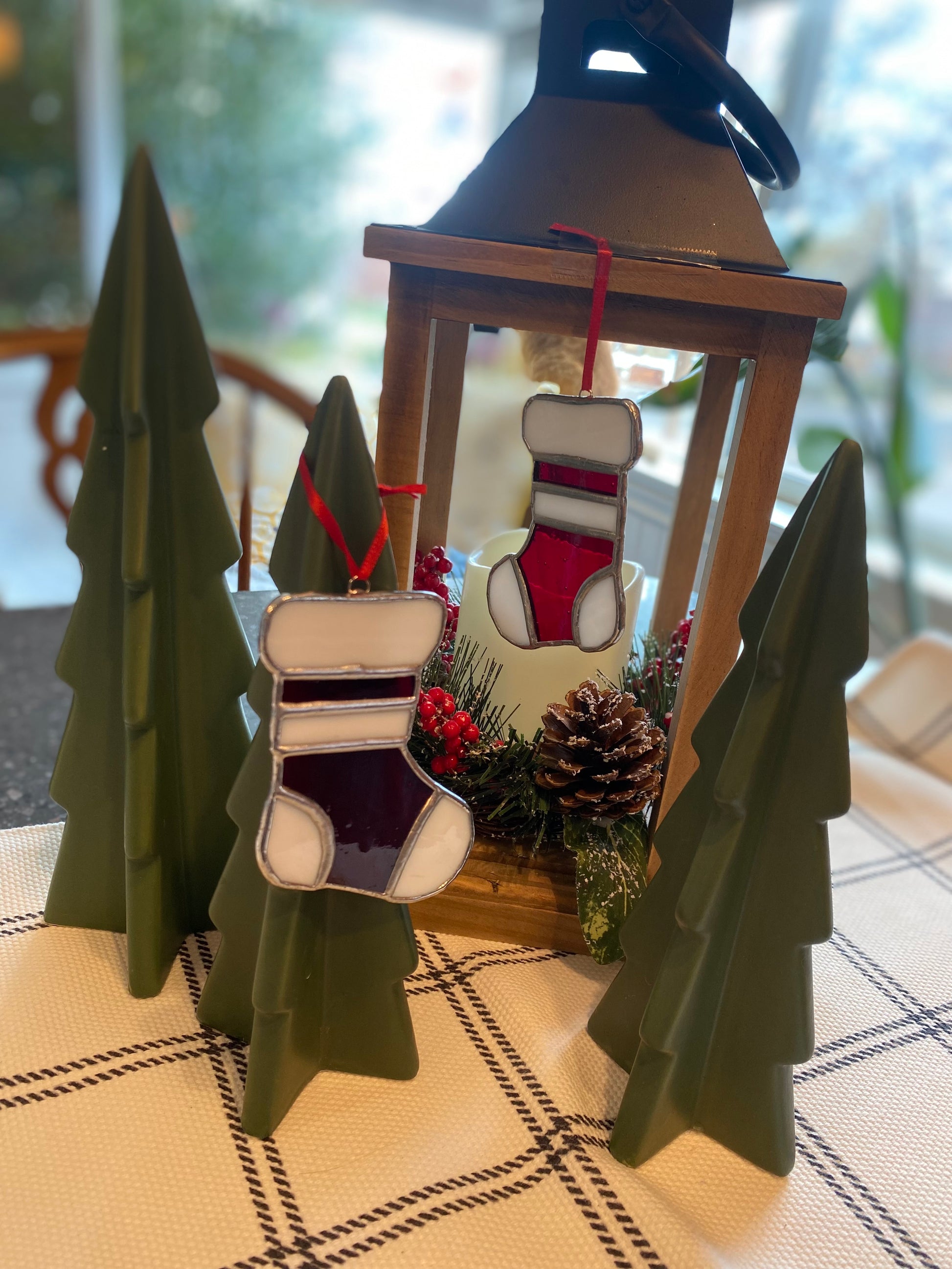 A beautiful stained glass stocking that brings festive charm to your holiday décor. Hand-crafted with vibrant colored glass, it catches light and adds elegance to any room.
